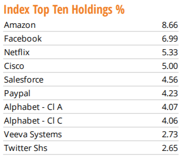Intuitivement, à l’ère de la distanciation sociale, les consommateurs ont afflué vers les vitrines en ligne et les plateformes d’échange virtuelles. Le site Direxion Daily Dow Jones Internet Bull 3X Shares (NYSE : WEBL), qui suit l’indice Dow Jones Internet Composite Index, a gagné environ 95% au cours du mois d’avril, en grande partie grâce à certaines des valeurs les plus performantes du segment.