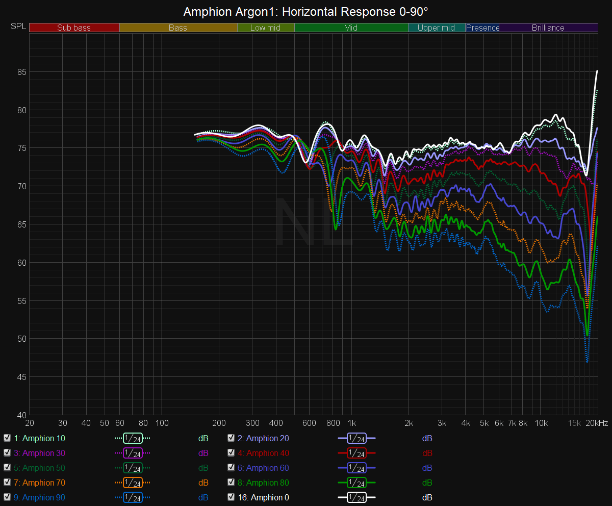 Les Amphion présentent une très bonne directivité horizontale, mais ne sont pas nécessairement meilleurs que d’autres concurrents dotés de guides d’ondes décents. Mais en utilisant un crossover inhabituellement bas (1,6 kHz), l’Argon1 est capable de maintenir une réponse verticale beaucoup plus douce que la plupart des enceintes non coaxiales.