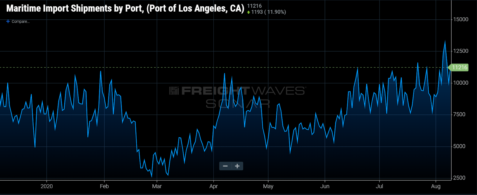 Selon le graphique des expéditions maritimes par port ci-dessous, le port de Los Angeles, en Californie, a connu une légère hausse des importations américaines en provenance de Chine.