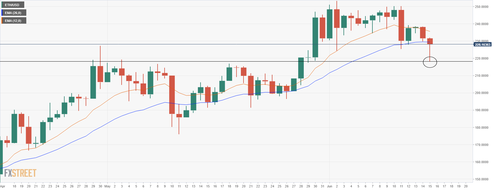 Bitcoin a eu une autre jambe en moins aujourd’hui, le 15 juin, mais les taureaux ont réussi à faire remonter Bitcoin d’un minimum de 8 910 $. Le chandelier quotidien actuel est un chandelier de retournement haussier et indique que les taureaux sont toujours intéressés par l’achat de Bitcoin.