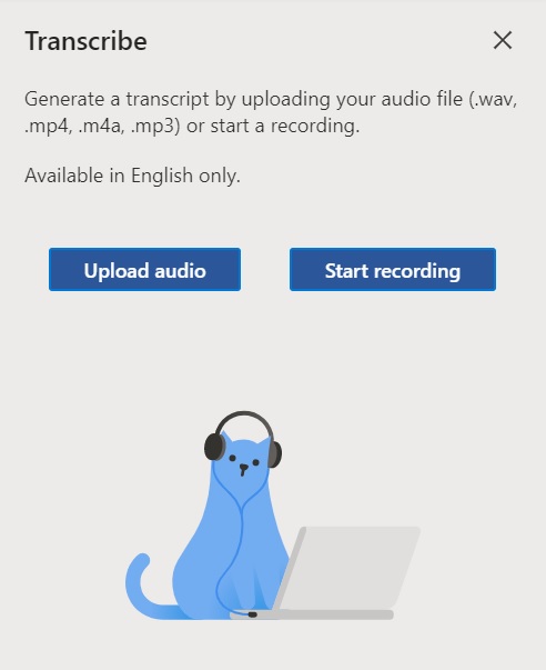 Une fois que vous aurez cliqué sur «Transcrire», vous aurez la possibilité de télécharger l’audio à transcrire ou d’enregistrer de l’audio en direct. La fonction de téléchargement accepte les fichiers .wav, .mp4, .mp3 et .m4a. Gardez à l’esprit que si vous utilisez la fonction de téléchargement, vous ne pouvez télécharger que cinq heures d’enregistrements par mois. Il n’y a pas de limite de temps pour l’audio en direct. Pour démontrer, je me suis enregistré en train de faire un soliloque shakespearien, juste parce que je voulais voir à quel point la transcription était exacte.