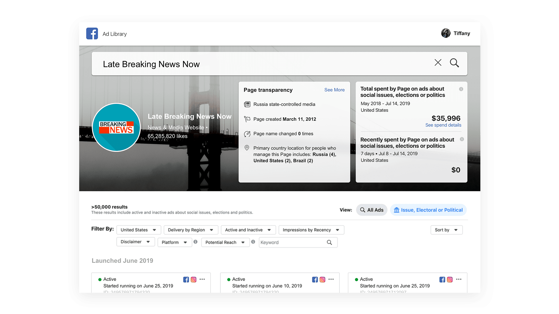 Aux États-Unis, les étiquettes apparaîtront directement sur les flux des utilisateurs, tandis que dans le reste du monde, elles apparaîtront sur les pages, la section de transparence des pages et la vue de la page de la bibliothèque d’annonces.