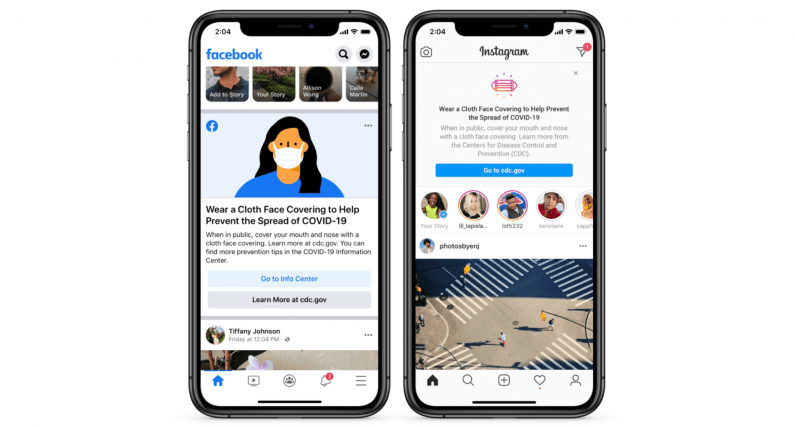 Facebook veut maintenant essayer de convaincre plus de gens de porter un masque en affichant de manière bien visible une alerte sur les fils d’actualité des gens sur Instagram et Facebook. Vous verrez l’alerte ainsi que des liens vers le centre d’information sur les coronavirus de Facebook ainsi que la page officielle du CDC sur les coronavirus.