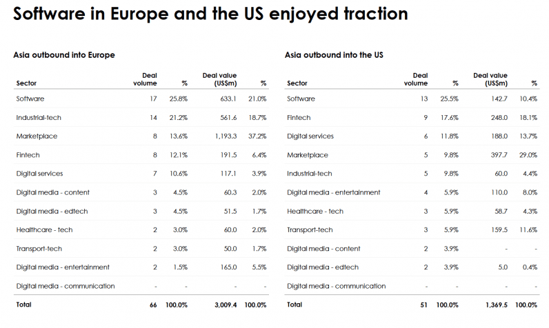SoftBank a conclu six transactions au cours du premier trimestre. Avec Temasek, la société a représenté plus de 49 % des investisseurs financiers asiatiques argent dans Europe et le ÉTATS-UNIS.