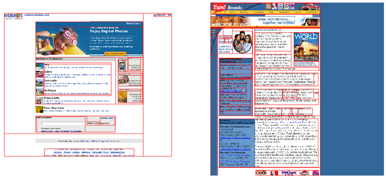 Par exemple, en 2005, les sites Webshots.com et Yum.com étaient considérés comme relativement similaires, mais présentaient des schémas de couleurs et des mises en page très différents. Alors que les deux sites utilisent principalement du blanc, du bleu et du noir, le site de droite a un fond bleu.